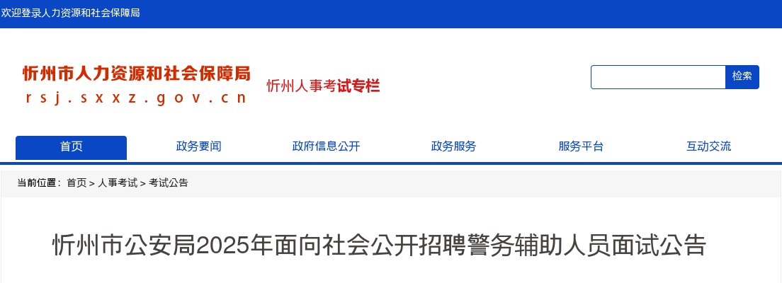 原标题:忻州市公安局2025年面向社会公开招聘警务辅助人员面试公告