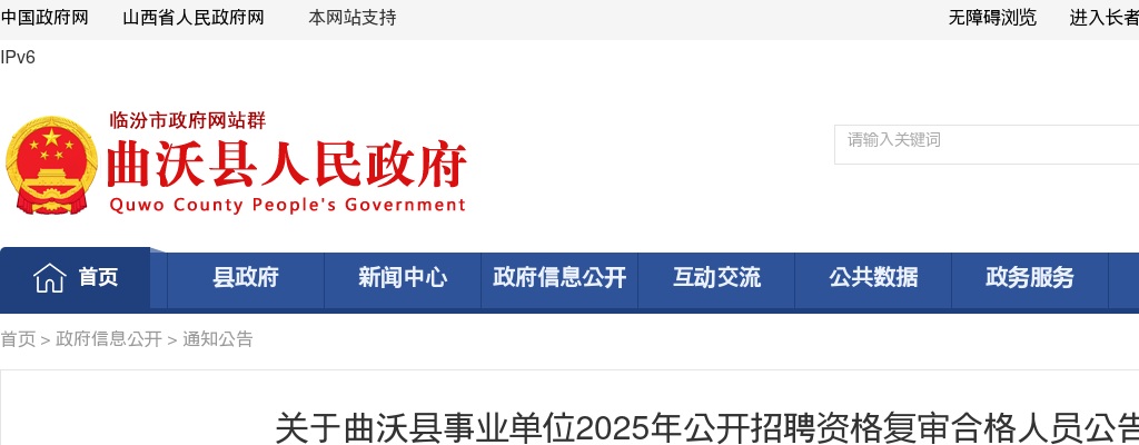 根据《山西省2025年事业单位公开招聘公告》《关于曲沃县事业单位2025年公开招聘资格复审公告》,资格复审工作已完成。现将资格复审合格人员公告如下(详见附件)