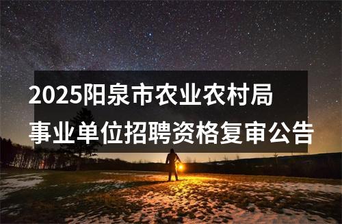 原标题:阳泉市农业农村局2025年事业单位公开招聘工作人员资格复审公告